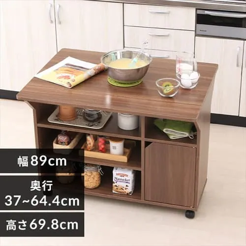 収納力抜群の便利なキッチンワゴン!天板はバタフライ式で用途に合わせて「広さ」を自由に調節!広い天板を活かしたサブ調理スペースとして使ったり、壁に寄せてカウンターデスクにも早変わり!収納力も抜群でキッチンがスッキリ片付きます!【商品コード:K...